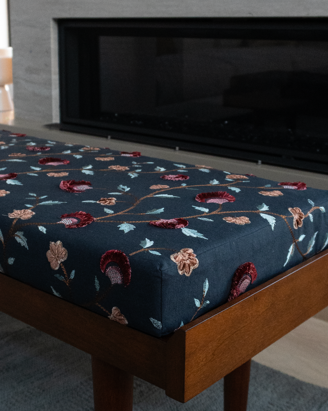 Finalized design and materials in hand, work begins. Whether the fabrication of a cushion or lampshade, or the reupholstery of a treasured family piece, I execute the design every stitch, ruffle and pleat.